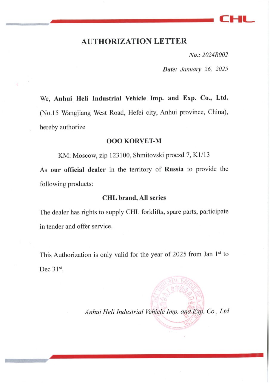 Минимальная гарантия на новые погрузчики и штабелеры составляет 12 мес или 2000 м/ч