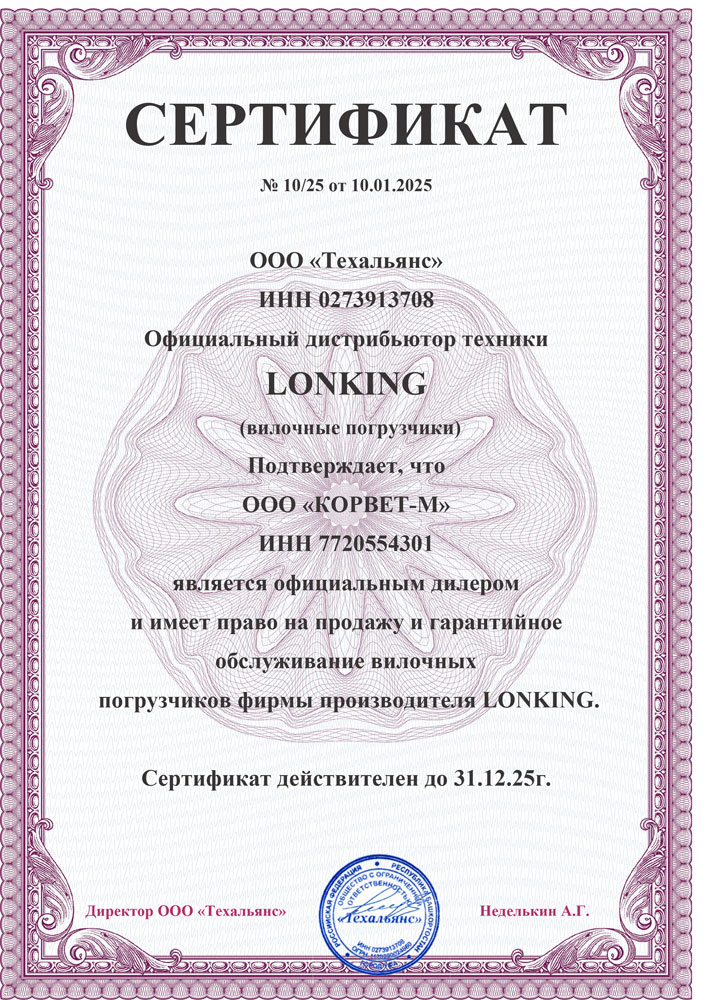 Минимальная гарантия на новые погрузчики и штабелеры составляет 12 мес или 2000 м/ч